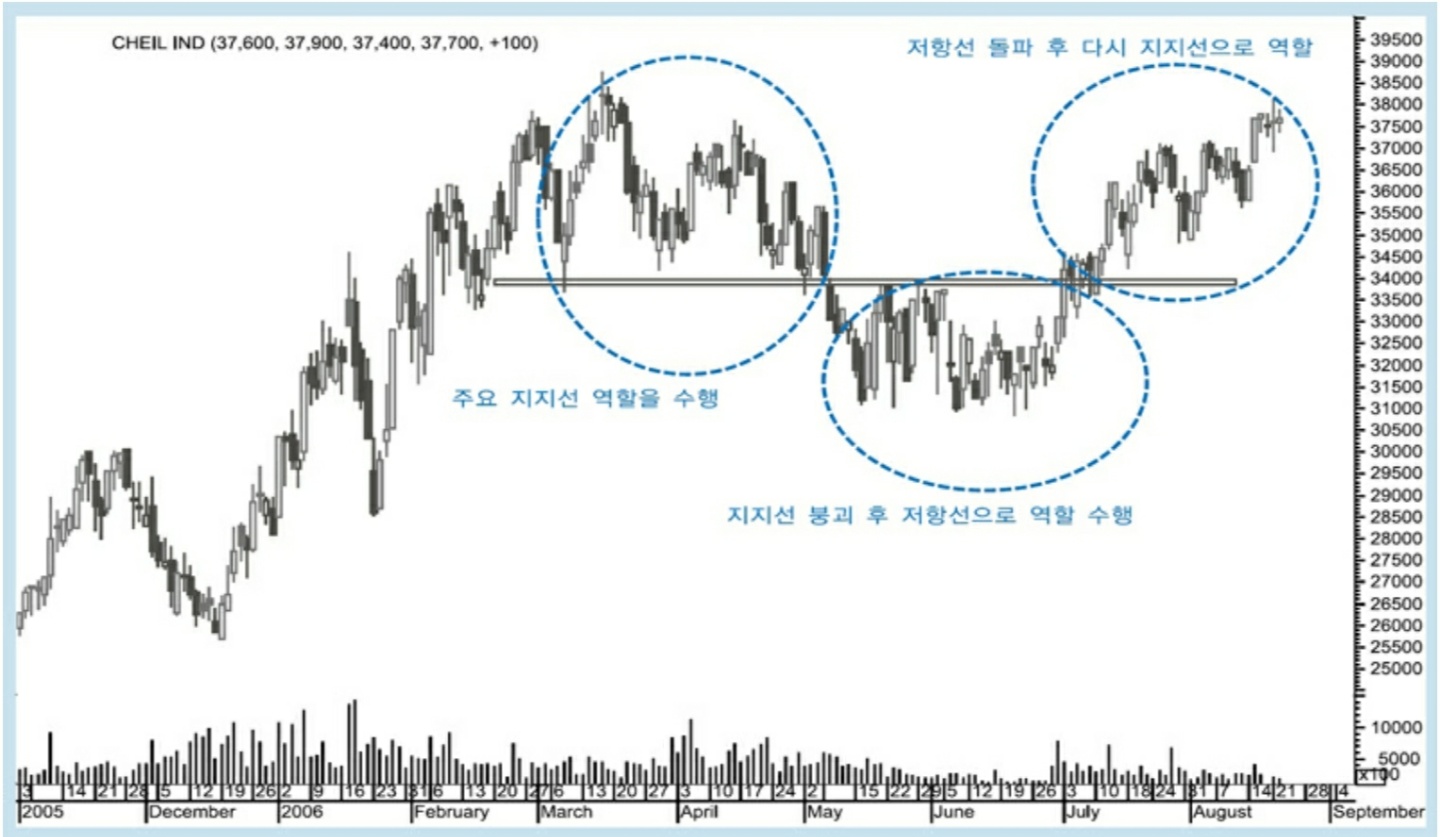 저항선이나 지지선이 기술적 분석에서 갖는 중요한 이유는 다음과 같다.